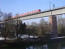 Two years after operations commenced on Stuttgart S-Bahn lines S1, S5 and S6 in 1978, the Backnang–Ludwigsburg line experienced a significant upswing with the extension of the S-Bahn line on 27 September 1980. Since then, line S4 services have operated between Ludwigsburg and Marbach. Extensive construction work was required ahead of the introduction of regular-interval timetables. The Neckar Viaduct at Marbach was replaced by a modern bridge, part of the Benningen–Favoritepark section was duplicated, a flying junction was built in Ludwigsburg and the section was electrified. Passenger services between Marbach and Backnang continued to be operated with diesel-hauled trains.