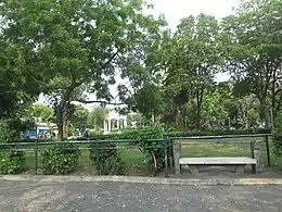 The Bacolod Public Plaza, officially the Plaza del 6 de Noviembre,[2][3] named after the day of the Spanish surrender of Negros Island to the Negros revolutionaries, is one of the notable landmarks of Bacolod, the capital of Negros Occidental, Philippines. It is located in the heart of the downtown area, near the old city hall and across from the San Sebastian Cathedral. The plaza is a trapezoidal park with a belt of trees around the periphery and a gazebo at the center. Scattered within the trees are four circular fountains.