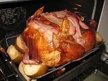 Bacon wrapped food is a style of food preparation, where bacon is wrapped around other ingredients or dishes,[1] and either grilled, fried, or baked.