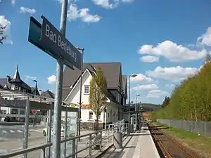 Bad Berleburg station is a railway station in the municipality of Bad Berleburg, located in the Siegen-Wittgenstein district in North Rhine-Westphalia, Germany.