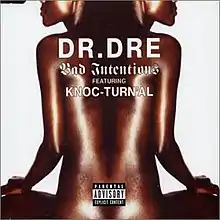"Bad Intentions" is a single by American rapper Dr. Dre, featuring vocals from fellow rapper Knoc-turn'al, recorded for and taken from the soundtrack to the film The Wash. The song was produced by Mahogany Music and co-produced by Dre himself. It contains a sample from "Hollywood Hot" by Eleventh Hour. The single was released on 7 January 2002.[1] The song debuted on the UK Singles Chart at number four, staying in the charts for sixteen weeks.[2] The music video for "Bad Intentions" depicts Dr. Dre and Knoc-turn'al filming a fictional music video at a burlesque house named "Bad Intentions". Rapper Jay-Z also used the beat as a diss towards fellow rapper Nas during their feud. The video features a cameo appearance from comedian Tommy Davidson