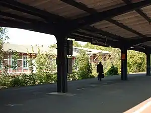 The station was regularly used by long-distance traffic from the beginning of the 20th century to the 1970s. After some restoration work, it has only one platform on a through track and it is thus formally classified as a Haltepunkt (halt). The platform is accessible for the disabled. The underpass that previously connected to another platform was closed. The grade II heritage-listed former station building now houses various service providers.