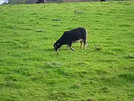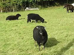 The Badger Face Welsh Mountain (Welsh Defaid Idloes [ˈdevaɪd ˈɪdlɔɪs]; also known as Badger Faced Welsh Mountain or Welsh Badger-faced) is a distinct variety of the Welsh Mountain breed of domestic sheep bred for sheep farming in Wales.[1] It is a hardy upland breed known for producing a high percentage of twins and triplets under good conditions. It appears in two sub-varieties of its own: the Torddu ([tɔrˈðiː], "black-bellied"), which has a white fleece with dark face and belly, and the Torwen ([tɔrˈwɛn], "white-bellied"), which has a black body with a white belly and white stripes over the eyes.[2] The Torddu is the more common of the two types. In both types, ewes are polled and rams are horned.[3] Although this breed grows wool, it is primarily raised for meat.[4]