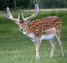 Cattle and badgers are not the only carriers of bTB. The disease can infect and be transmitted by domestic animals such as cats and dogs, wildlife such as deer, and farm livestock such as horses and goats. Although the frequency of infection from other mammals is generally much less than in cattle and badgers, other species of wildlife have been shown as a possible carriers of bTB. In some areas of south-west England, deer, especially fallow deer due to their gregarious behaviour, have been implicated as a possible maintenance host for transmission of bTB.[19][20] In some localised areas, the risk of transmission to cattle from fallow deer arguably is greater than it is from badgers.[19][20] M. bovis was shown to be hosted and transmitted to humans by cats in March 2014 when Public Health England announced two people in England developed bTB infections after contact with a domestic cat. The two human cases were linked to 9 cases of bTB infection in cats in Berkshire and Hampshire during 2013. These are the first documented cases of cat-to-human TB transmission.[21]