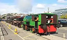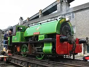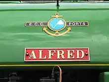 Alfred was always the wider-travelled of the two locomotives. In 1955, it spent a short period at Ponts Mill working in the china clay drier there while the regular locomotive was being serviced, the movement between Par harbour and Ponts Mill being made under its own power over British Railways tracks.[3] In 1994, it was taken to Exeter for a rail fair celebrating the 150th anniversary of railways in that city.[5] August 2002 saw it at St Blazey depot of an open day and it was steamed down the branch to Par harbour, the first time in 25 years.[4] In May 2009 it was taken to Saltash as part of the 150th anniversary of the Royal Albert Bridge.[6]