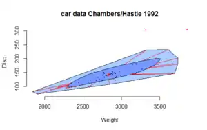- The observations that are not marked as outliers are surrounded by a loop, the convex hull of the observations within the fence.[6]