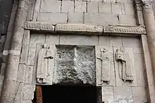The earliest Georgian forms of the dynastic name are Bagratoniani, Bagratuniani[3] and Bagratovani, changed subsequently into Bagrationi. These names as well as the Armenian Bagratuni and the modern designation Bagratid mean "the children of Bagrat" or "the house of/established by Bagrat", Bagrat being a given name of Iranian origin.[4] The origins of the Bagratid dynasty is still matter of debate between Georgian and Armenian scholars. Georgian scholars argue that the Bagrationis were of Georgian origin, while Armenian and Western scholars believe them to be a branch of the Armenian Bagratunis.[5]