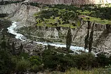 Bagrote Valley (Urdu: وادی بگروٹ) is a valley in the Karakoram Mountain range in the Gilgit–Baltistan region of northern Pakistan.[2] River Bagrote flows through the valley from the north towards the southwest of the valley, supplies water to Jalalabad and Oshikhandass and merges with the Gilgit River.