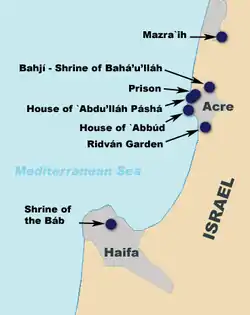 A Baháʼí pilgrimage currently consists of visiting the holy places in Haifa, Acre, and Bahjí at the Baháʼí World Centre in Northwest Israel. Baháʼís do not have access to other places designated as sites for pilgrimage.[1][2]