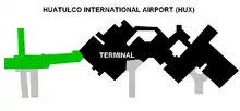 Bahías de Huatulco International Airport (Spanish: Aeropuerto Internacional de Bahías de Huatulco) (IATA: HUX, ICAO: MMBT) is an international airport located at Huatulco, in the state of Oaxaca, Mexico.[2] The airport handles national and international air traffic for the southern and southeastern Pacific coast of Oaxaca state.