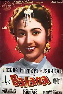 Bahana (transl. Excuse) is a 1960 Indian Hindi-language film starring Meena Kumari, Mehmood and Sajjan in lead roles. The film was directed by actor-director M. Kumar and was produced by Pramila under the banner of Silver Films.