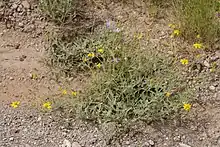 Bahia absinthifolia is a perennial up to 40 cm (16 inches) tall. It has yellow flowers with both ray florets and disc florets. It grows in sandy soil in desert regions.[6]