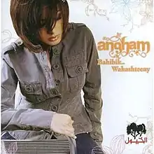 Bahibbik Wahashteeny (I Love You, I Miss You) is the seventeenth full-length Arabic studio album from Egyptian pop singer Angham, launched in Egypt on 25 July 2005 (see 2005 in music) by Rotana Production Company. It was her second record on the label after "Bet'heb Meen" (Who Do You Love) which was released in 1997. The 2005 record has witnessed a critical success but commercial disappointment. "Bahibbik Wahashteeny" is perhaps the least sold record during Angham's entire singing career in the last 10 years, but improved its sale gradually upon the broadcast of its second single "Bahib Nafsi" (I Love Myself). However, despite the promotion and Angham's 2005 tour, the record had only a moderate success and Angham was unable to garner any hits from the album except "Albak" (Your Heart) and "Inta Meen" (Who Are You) which both caused a tremendous success around the Middle East and the Gulf countries, respectively. The record is available on both CD (57:44 minutes) and tape (50:38 minutes) format. The bonus track "Inta Meen" (Who Are You) and the remix of "Bahibbik Wahashteeny" are only featured on the CD version. In this record, Angham collaborated with many new faces. They include Hend elKady who worked with Angham for the first time as a music composer; her brother Khaled Suleiman and Ismael as new music arrangers; Ameer Teaima, Sultan Salah, Wissam Sabry, Khaled Abou elFateh and Fahd Thamal as the new lyricists.