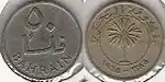 ![]() | 50 fils | 22 mm | 4.5 g | Cupro-nickel | Dhow (Bahraini boat) | Value | 1992 |