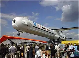 A full-size engineering mock-up of the Baikal was exhibited at the Paris Air Show in July 2001. Similar mockups were tested in wind tunnels of the Central Aero- and Hydrodynamics Institute TsAGI, at speeds of 0.5 – 10 Mach. However, according to unofficial statements by Khrunichev Center representatives, there would have been a long development program to the production of models for captive tests, and the mock-up demonstrated at Le Bourget differs greatly in appearance and design from the Baikal that will actually be launched.