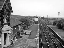 The original station, which was situated 1 km east of the present, was opened by the Caledonian Railway in January 1866 when passenger traffic started. The line became part of the London, Midland and Scottish Railway during the Grouping of 1923. The line then passed on to the Scottish Region of British Railways on nationalisation in 1948. The old station closed to passenger traffic in 1964.