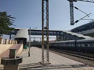 South Western Railway (SWR) developed Baiyyappanahalli, located on the eastern part of the city, as the third railway terminal for the city along with facilities in 2008 due to no space around the Bangalore City railway station.[2] Work on a third coaching terminal has begun and is expected to be complete by March 2020. It is a Railway Junction, dividing the direct single electrified line to Salem via Hosur-Dharmapuri and the electrified double line towards Jolarpettai via Krishnarajapuram.[3]