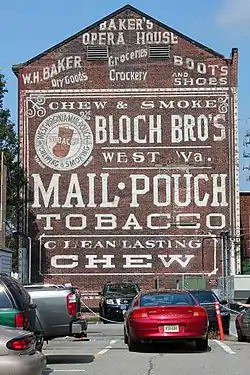 The Baker Building, also known as Baker's Opera House, in Dover, Morris County, New Jersey, United States, is a historic theater built of brick in the mid-1880s. Built in the Eclectic style, it has three stories plus a tower. On the north side facing Blackwell Street, there are recessed brick panels, granite lintels and window sills, and a granite panel reading "Baker Building." A Mail Pouch Tobacco sign covers the south side of the building.[2]