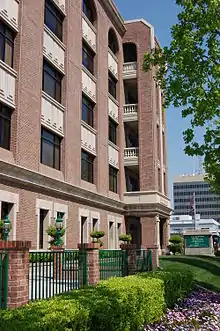The current City Hall was completed in 1954, after the old structure was destroyed in the 1952 Kern County earthquake.[3] The old City Hall was too small and the city had started planning a new structure one year earlier. By the early 2000s, the city had again outgrown the existing building. Many of the city's departments and officials were at various locations throughout the city. The city decided to reconsolidate these services back to downtown.[4]