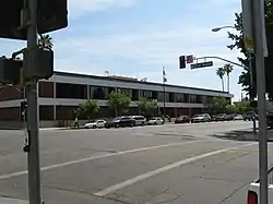 The Bakersfield Police Department (BPD) is the agency responsible for law enforcement within the city of Bakersfield, California, in the United States. It has over 590 officers and professional staff, covering an area of 151.2 square miles (392 km2) serving an urban population of more than 400,000. The current chief of the department, since April 2020, is Greg Terry. The department protects the city, split between two areas and six zones with two stations, the main department headquarters and the west side substation. The department administration is made up of the chief of department, two assistant chiefs, four captains and eleven lieutenants.[2]