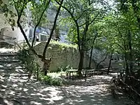 Bakota has an ancient Orthodox cave monastery (48.585647°N, 26.999702°E), which includes ancient frescoes and paintings dating back to the 12th-14th centuries,[1] as well as preserved remains of monks.[3] Local legend has it that the Bakota Cave Monastery was founded by Saint Anthony of Kiev, who also founded the historic Kiev Pechersk Lavra in 1051, now in Kyiv, Ukraine.[4] A Paleolithic archaeological site is also located near the village.[1] Bakota is currently part of the National Environmental Park "Podilski Tovtry".