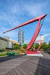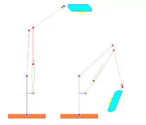 The pivoting arm streetlamps in the Schouwburgplein, Rotterdam use a pair of hydraulic cylinders to control the forearm and upper arm.
