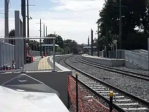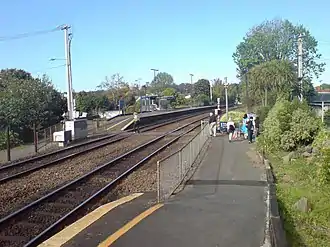 ![]() The new station, viewed from near the pedestrian crossing at the west end of the platform | |||||||||||