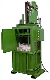 American baler: This baler bales corrugated materials.
