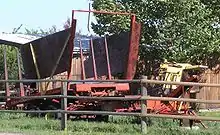 The rounded surface of round bales poses a challenge for long-haul, flat-bed transport, as they could roll off of the flat surface if not properly supported. This is particularly the case with large round bales; their size makes them difficult to flip, so it may not be feasible to flip many of them onto the flat surface for transport and then re-position them on the round surface at the destination. One option that works with both large and small round bales is to equip the flat-bed trailer with guard rails at either end, which prevent bales from rolling either forward or backward. Another solution is the saddle wagon, which has closely spaced rounded saddles or support posts in which round bales sit. The tall sides of each saddle prevent the bales from rolling around while on the wagon, as the bale settles down in between posts. On 3 September 2010, on the A381 in Halwell near Totnes, Devon, England, an early member of British rock group ELO Mike Edwards was killed when his van was crushed by a large round bale. The cellist, 62, died instantly when the 600-kilogram (1,300 lb) bale fell from a tractor on nearby farmland before rolling onto the road and crushing his van.[10]