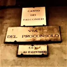 Family tombs are listed within the Basilica of Santa Croce, Florence and Sant'Ambrogio, Florence. In ancient times the family resided on the Via de' Balestrièri (since 1382 known as Via del Proconsolo) connecting the Piazza del Duomo to the Arno River.[8]
