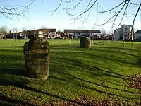The Balfarg henge was excavated between 1977 and 1978 by Roger Mercer prior to the development of a new housing estate, work which established that the two extant standing stones were part of a circle that stood within the henge. The two surviving specimens lined the north-west oriented entrance to the henge.[2]