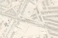 The original station was on the west side of Balham High Road; it was re-sited by the LB&SCR in 1863 as part of works to widen the line, and improve the route between East Croydon and Victoria.[10] Further remodelling of the line was undertaken in 1890 and 1897 to increase capacity.[11] It was named Balham then renamed Balham and Upper Tooting on 9 March 1927, reverting to Balham on 6 October 1969.[9]
