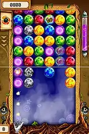 Besides standard sphere removal and removal with the bonus spheres the player can make combos. A combo is made if the player removes more than two sphere chains quickly, one after another. This can be done either automatically (dropping spheres connect into chains) or activated by the player (by quickly throwing new spheres before the combo bar drops to zero). Combos allow the player to earn more points in the single-player modes and put more spheres in the opponent's well in the multiplayer mode.[2]