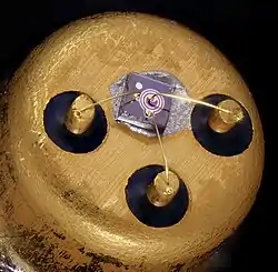 The ball quickly solidifies, and the capillary is lowered to the surface of the chip, which is typically heated to at least 125°C. The machine then pushes down on the capillary and applies ultrasonic energy with an attached transducer. The combined heat, pressure, and ultrasonic energy create a weld between the copper or gold ball and the surface of the chip—which is usually copper or aluminum. This is the so-called ball bond that gives the process its name.[2] (All-aluminum systems in semiconductor fabrication eliminate the "purple plague"—a brittle gold-aluminum intermetallic compound—sometimes associated with pure gold bonding wire. This property makes aluminum ideal for ultrasonic bonding.)