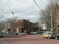 The Ballard Avenue Historic District is a section of downtown Ballard in Seattle, Washington, that was listed on the National Register of Historic Places in 1976 (ID #76001885). The district consists of Ballard Avenue N.W. between N.W. Market Street and N.W. Dock Place, and is located near to and along Salmon Bay. After initial work by the Ballard Avenue Association and the city of Seattle's Urban Conservation Division, Seattle mayor Wes Uhlman signed the ordinances that led to the national recognition of the area.[1] The neighborhood of Ballard is known for a large historic population and presence of immigrants from Sweden, and King Gustaf of Sweden read the proclamation inducting the district to the historical registry in 1976, and at the same time dedicated the new bell tower at Ballard's Marvin's Garden Park, which housed the original bell from Ballard's old city hall.[2] The historic markers that can be seen on 26 of the buildings were created and erected by the Ballard Historical Society.[3]