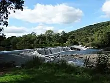 The weir, constructed by Leslie when the mills first opened, collapsed in December 2014.[14] The site surrounding the weir had become a popular swimming location, but following its collapse the current has flowed much more quickly, and several people have drowned or almost drowned in the waters close to the weir.[15][16][17] It has been proposed that the Office of Public Works may intervene in the restoration of the weir.[14]