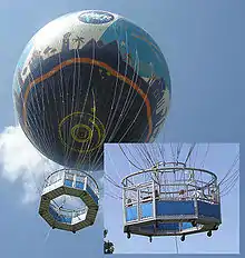 Tethered gas balloons have been installed as amusement rides in Paris since 1999, in Berlin since 2000, in Disneyland Paris since 2005, in the San Diego Wild Animal Park since 2005, in Walt Disney World in Orlando since 2009, and the DHL Balloon in Singapore in 2006. Modern tethered gas balloons are made by Aerophile SAS.