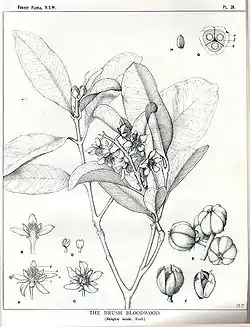 Baloghia inophylla is a rainforest tree of eastern Australia. It is also known as the brush bloodwood, as it occurs in brushes, (a nineteenth-century term for rainforest), as well as bloodwood, as the clear sap is blood red. Other common names include ivory birch and scrub bloodwood.[2]