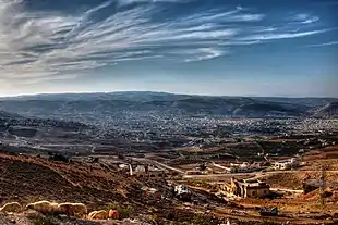 According to J. Sourdel-Thomine, the Arabic etymology of al-Balqāʾ could be related to the feminine form of the Arabic word ablaq, meaning "variegated".[1] The most popular etymology cited by the medieval Arabic geographers, however, was that Balqa was the name of a descendant of the Bani Amman ibn Lut, which conjures up the Ammonites and the biblical figure and Islamic prophet Lot.[1]