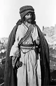 The occupation of Transjordan and the wider Levant by British-led Allied forces during World War I marked the end of the late Ottoman period of growing trade, settlement and cultivation in the Balqa. With the disruptions to the railway caused by the war, trade and security eroded and Bedouin tribesmen who had begun transitioning to plantation farming or cultivation reverted to nomadism. The importance of the area also decreased under the British and French mandatory powers whose focus centered on Palestine, the northern half of the Levant and Mesopotamia. Commerce eventually returned to the Balqa, but underwent significant change as a result of new borders separating it from Damascus and Medina and new foreign interests.[50] In a 1922 population survey, the Balqa district had a settled population of 39,600 living in fifteen settlements, the largest of which was Salt (pop. 20,000), followed by Wadi Sir, Amman and Madaba whose populations ranged between 2,400 and 3,200.[51] There were 59,500 Adwan, Balqawiyya, Banu Hamida and Salit tribesmen living in 11,900 tents, while the Banu Sakhr, whose encampments were not restricted to the Balqa, had 5,500 tents and counted 27,500 tribesmen.[51] With the exception of a mostly Greek Orthodox and Greek Catholic Christian minority in Salt, its smaller satellite villages of Fuheis and Rumaymin, and Madaba, the inhabitants were Sunni Muslims.[51][52] Other than the Circassian/Chechens who represented about 5% of Transjordan's population, the inhabitants of the Balqa and Transjordan in general were ethnically Arab, the main social division being between pastoralists and peasants.[51] The main crops of the Balqa were corn, wheat and barley, as well as the well-known grapes of Salt.[53]