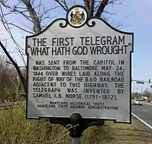 The Baltimore–Washington telegraph line was the first long-distance telegraph system set up to run overland in the United States.[1][2][3]