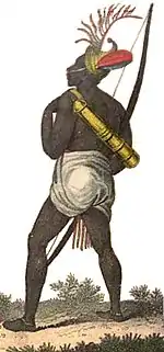 While there is little consensus among modern historians and ethnologists as to the origins or meaning of the ethno-linguistic term, references to the name Bambara can be found from the early 18th century.[9] In addition to its general use as a reference to an ethno-linguistic group, Bambara was also used to identify captive Africans who originated in the interior of Africa perhaps from the upper Senegal-Niger region and transported to the Americas via ports on the Senegambian coast. As early as 1730 at the slave-trading post of Gorée, the term Bambara referred simply to slaves who were already in the service of the local elites or French.[10]
