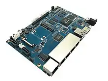 Banana Pi also can run NetBSD, Android, Ubuntu, Debian, Arch Linux, Raspberry Pi OS operating systems, though the CPU complies with the requirements of the Debian armhf port.[2] Most models use a MediaTek or Allwinner SoC (system on chip) with two or four ARM Cortex cores.