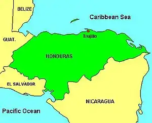 After the first concessions in 1912, US concerns achieved more or less complete control of the productive alluvial plains of Honduras' Atlantic coast. The area around Puerto Cortés was dominated by the Cuyamel Fruit Company, the La Ceiba region by Standard Fruit, and Tela and Trujillo were controlled by United Fruit's subsidiaries, the Tela Railroad Company and the Trujillo Railroad Company.[13] By 1929, the United Fruit Company operated in over 650,000 acres (2,600 km2) of the country and controlled the major ports.[14]