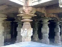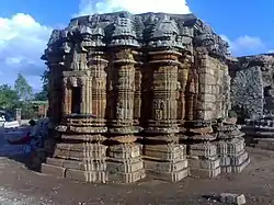 In the early 13th century, the temples of this period have nagara articulation, built in the stepped diamond and the square plan natural to a nagara superstructure. Notable among temples with a stepped-diamond style are the Ganesha Temple at Hangal, the Banashankari Temple at Amargol (which has one dravida shrine and one nagara shrine), and a small shrine that is a part of the ensemble at the Mahadeva Temple (Itagi)