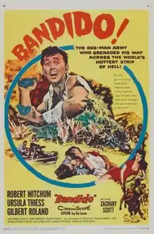 Bandido is a 1956 American Western film starring Robert Mitchum, Ursula Thiess, Gilbert Roland, and Zachary Scott. The film, set in the Mexican Revolution and filmed on location around Acapulco, was written by Earl Felton and directed by Richard Fleischer. Robert Mitchum also co-produced the film through his DRM Productions company.[2]