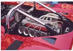 The engine displacement was equal to 1300 cc, patterned after the previous experience on a Fiat monoblock. It was constructed fully from aluminium by Bandini and features a dry sump lubrication, chain distribution, double overhead camshafts, and 16 valves. The fuel injection is mechanical, and all is hooked up to a five-speed manual gearbox.[1]