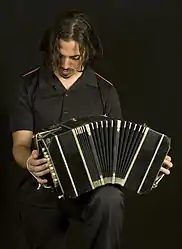 The Bandonion, so named by the German instrument dealer Heinrich Band (1821–1860), was originally intended as an instrument for religious and popular music of the day, in contrast to its predecessor, German concertina (Konzertina), which had predominantly been used in folk music.[1]: 16 Around 1870, German and Italian emigrants and sailors brought the instrument to Argentina, where it was adopted into the nascent genre of tango music, a descendant of the earlier milonga.[2]
