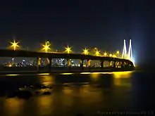 The Bandra-Worli Sea Link (officially known as Rajiv Gandhi Sea Link[1]) is a 5.6 km long, 8-lane wide bridge that links Bandra in the Western Suburbs of Mumbai with Worli in Central Mumbai. It is the longest sea bridge, as well as the 4th longest bridge in India after Bhupen Hazarika Setu, Dibang River Bridge and Mahatma Gandhi Setu. It is a cable-stayed bridge with pre-stressed concrete-steel viaducts on either side. It was planned as a part of the proposed Western Freeway that would link the Western Suburbs to Nariman Point in Mumbai's main business district, but is now planned to become part of the Coastal Road to Kandivali.