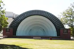 Bandshell Park, also known as City Park and Music Pavilion, is located in Ames, Iowa, United States. It is a nationally recognized historic district that was listed on the National Register of Historic Places in 1999.[1] At the time of its nomination it consisted of six resources, which included one contributing building, one contributing site, two contributing structures, one contributing object, and one non-contributing object.[2] The park, located to the east of the central business district, was gift to the city in 1884 from the C&NW Land Company. The full city block was the first park established in Ames.[2]